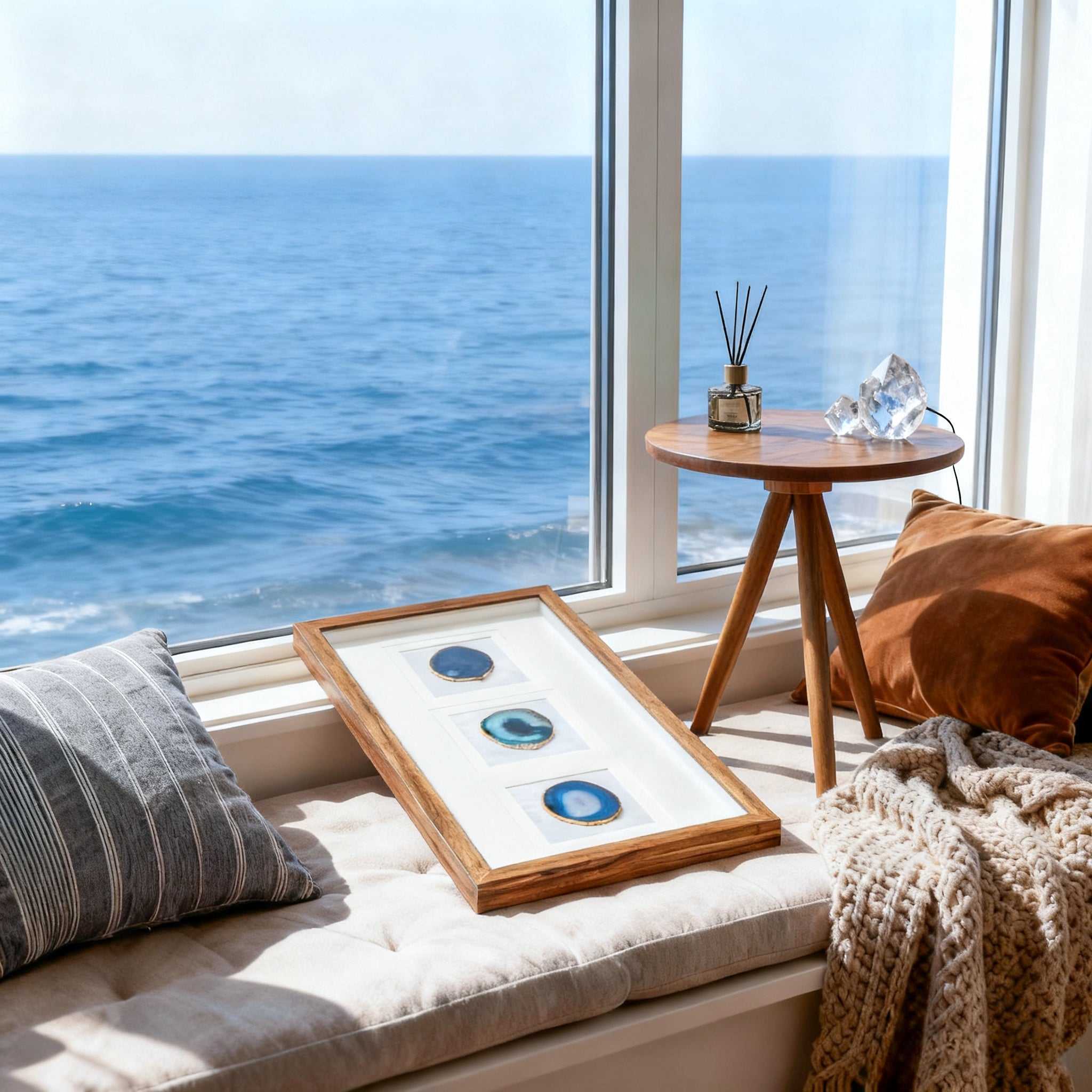 Dreifach Blaue Achat Wanddeko mit Goldfolie